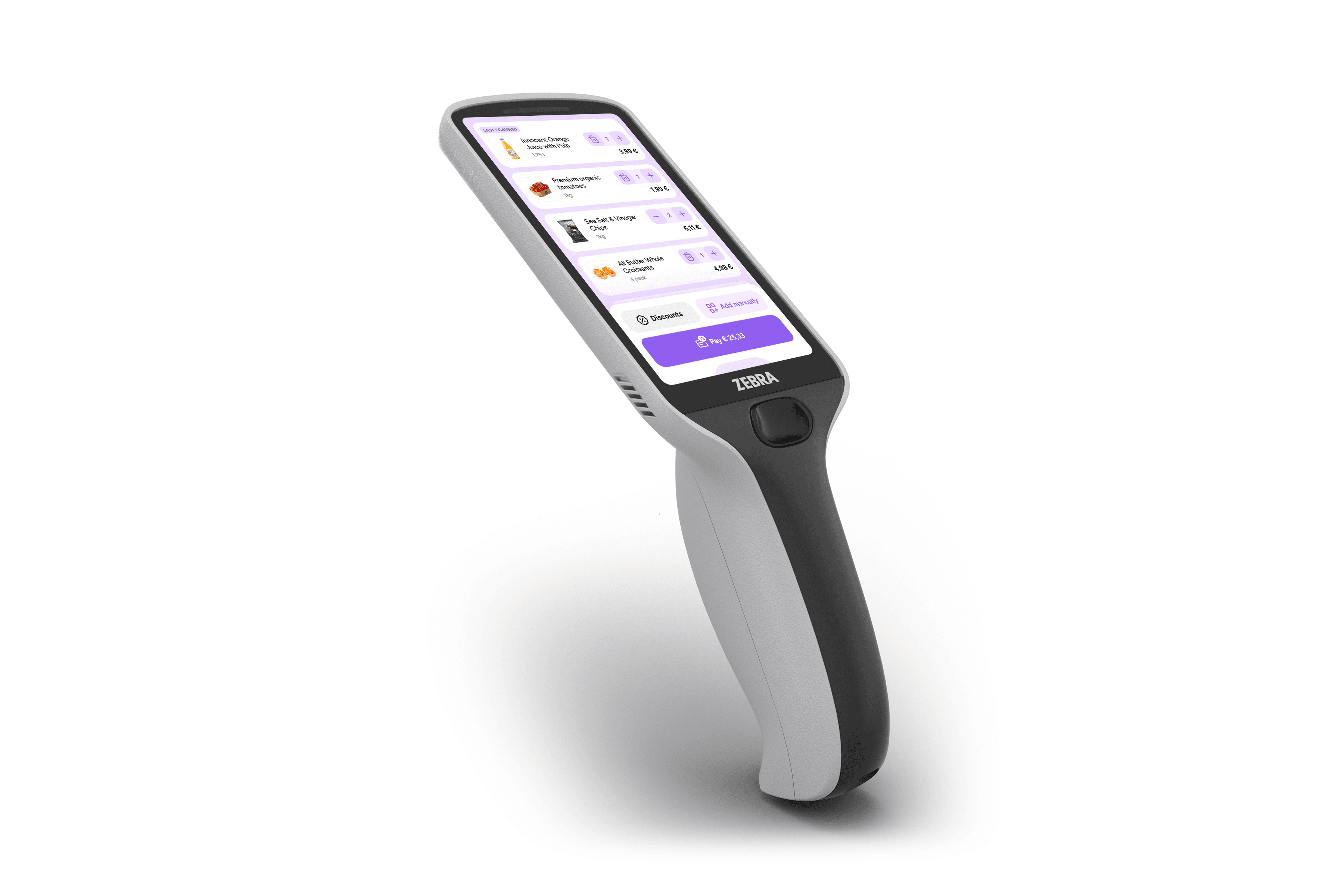 shopreme offers out-of-the-box solutions with Zebra's Personal Shopper devices, including the PS20 and PS30, as well as with Honeywell and Meferi. These high-performance handheld devices are designed for demanding retail environments, offering fast scanning, a responsive touchscreen, and a durable construction for continuous in-store use. All solutions, except the PS20, support PIN-on-glass payment, enabling secure and convenient checkouts directly on the device.
